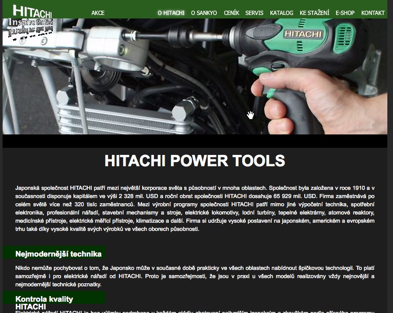 Prodej, servis a půjčování elektronářadí Hitachi. Dovoz nářadí Kress. V nabídce jsou vrtací a kombinovaná kladiva, vrtačky a šroubováky, aku nářadí, úhlové brusky, drážkovadla....